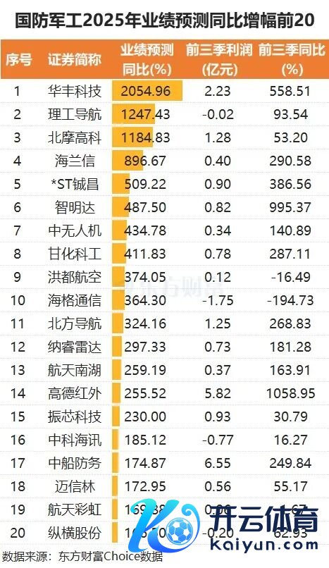 量度2025年全年,从机构预测角度来看,华丰科技2025年预测净利润同比增长为2054.96%,排在国防军工板块首位。理工导航紧随自后,2025年预测净利润同比增长1247.43%。北摩高科排在第三,2025年齿迹预测同比为1184.83%。