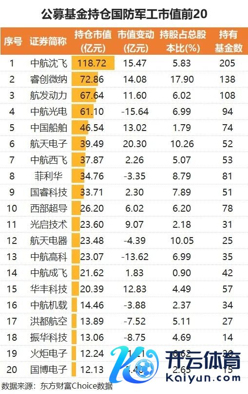从机构握仓角度看,以公募基金为例,国防军工板块中,中航沈飞是公募基金的第一大重仓股,握仓市值为118.72亿元,握有基金数为205只。睿创微纳紧随自后,公募基金握仓市值为72.86亿元。航发能源、中航光电、中国船舶的握仓市值也居前。