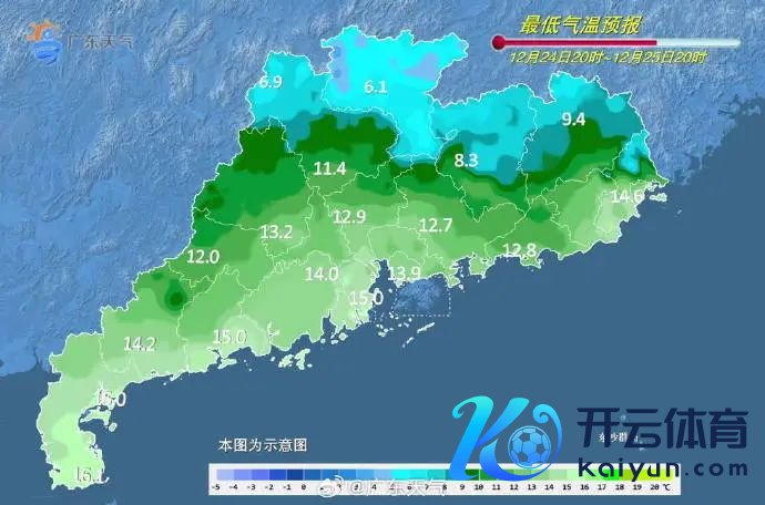 12月24日,南部市县多云间阴天,局部有稀疏小雨,中北部市县多云。最低气温:粤北市县4~8℃,南部市县11~15℃,其余市县8~11℃。