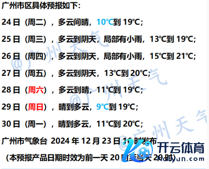 广州市雀跃台瞻望,12月23日—24日广州云量增加,12月25日局部有小雨。