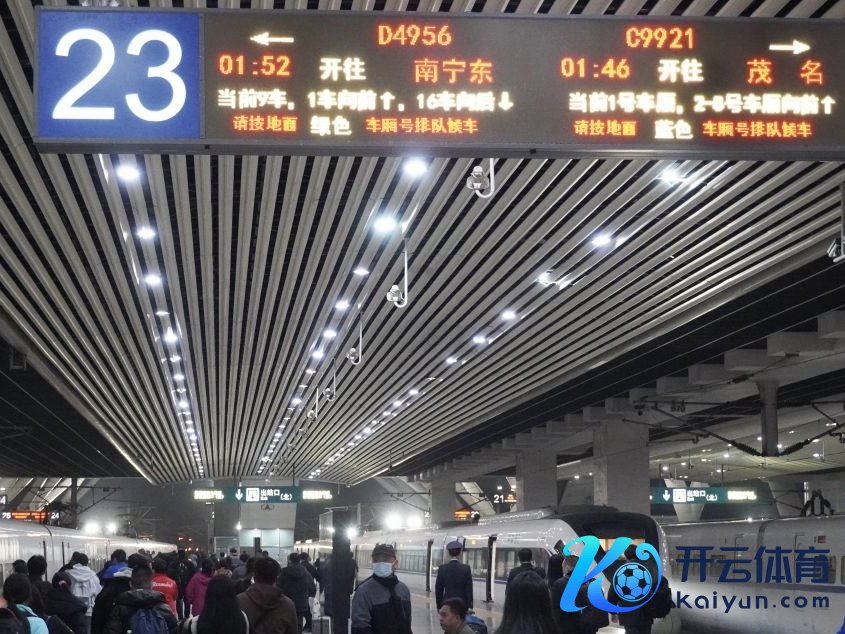 1月21日0时13分欧洲杯体育,由广州南站开往茂名的C9925次列车正点开出,这是广州南站2025年春运时刻的首趟始发夜间高铁,也标记着“今夜”模式庄重开启。