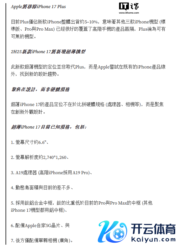 比如郭明錤宣称,苹果尝试在既有的 iPhone 居品线外,找到新的联想趋势,超薄 iPhone 17 的定位不在于比拼硬件规格,而是聚焦在调动外不雅联想。