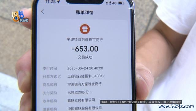 6 月 24 号,项先生在宁波镇海开元广场的"曼卡龙珠宝"店里买了一枚足金畛域,准备作念婚戒,用旧金抵换后付了 653 元。