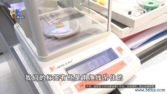 畛域在店家那边,项先生提供了一段那时拍的视频,画面中看不出畛域的钢印,称重默契 6.317 克,标签上的质地为 6.35 克,数字对不上。
